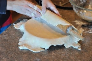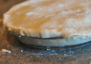 I like to take my pie plate and hold it over the dough to see exactly how big I need my dough circle. I always roll about 2 inches more than the diameter of my pie plate.