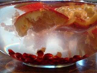 Using a slotted spoon (not pictured) remove the floatage from the top of the bowl and gently remove any pith still attached to the seeds.