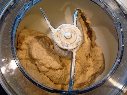 Here, I’ve pinched off a piece of the dough (this is about midway through kneading). The dough is sticking to my fingers…