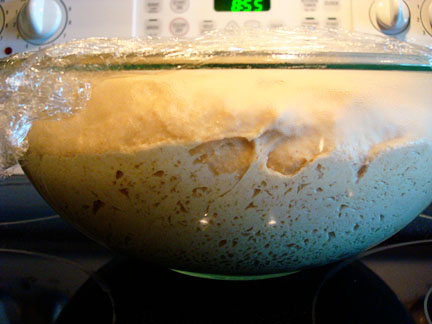 Which brings me to another point, a warm rising spot is important. The ideal temperature for dough to rise properly is about 70 degrees or warmer. If my kitchen is a few degrees cooler than this (based on the thermostat in my house), I don’t fret too much and just assume it may take longer for the dough to rise. However, if my house is unusually cool – 66 degrees or lower, I will usually turn on my oven to about 350 degrees and let the dough rise on top of the warmed oven (I have a ceramic top stove that warms up when the oven is on).
