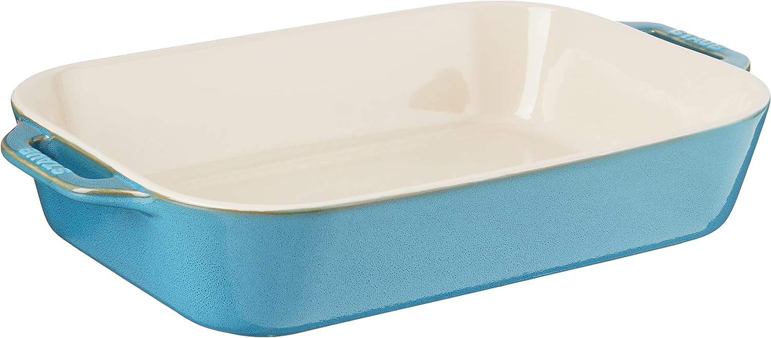 Ceramic 9X13-inch Dish: This lovely ceramic casserole dish has become one of my go-to baking dishes. I use it for casseroles, lasagna, cinnamon rolls and more. It bakes evenly and is lovely!